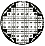 Type SEMF1:參考環(huán)形邊緣識別東西南北。四個象限標記朝向中心逐漸變細。通過參考四個象限中的環(huán)形邊緣數(shù)字和徑向字母來識別100個徑向扇區(qū)。