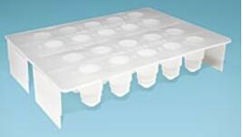 聚乙烯材料,薄的透視的尖端便于樣本包埋時快速的定向;樣本包埋塊可以用拇指輕輕向上頂出;20個管子各自獨立,允許空氣自由流動(不會局部聚集溫度),聚合條件統(tǒng)一;模具設計嚴密,適合厭氧包埋樹脂的使用,一個支架疊放在另一個有包埋樹脂的支架上方就可以隔絕空氣;模具也可以用來存儲樹脂切片。