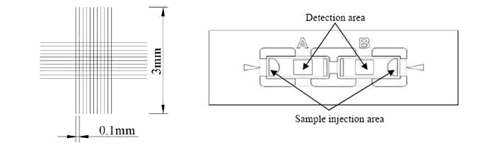 計數(shù)板的外觀尺寸:25*75*1.6mm,計數(shù)池深度0.02mm,每池的加樣體積數(shù)3µl?