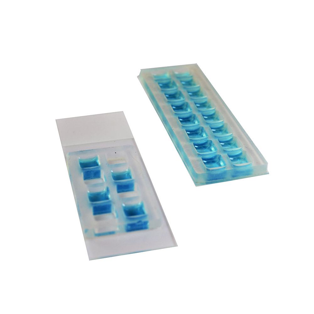 FlexWell™芯片孵育池為在載玻片(特別是ONCYTE®膜被覆載玻片)上進行蛋白質(zhì)芯片研究中的結合反應提供最佳幫助。孵育池硅膠制造,一面有特殊的粘合劑(帶可去除的襯紙),去除襯紙后可在玻片上形成緊密的密封。芯片圍欄(gasket上可以用Seal Strips封口防止蒸發(fā)。