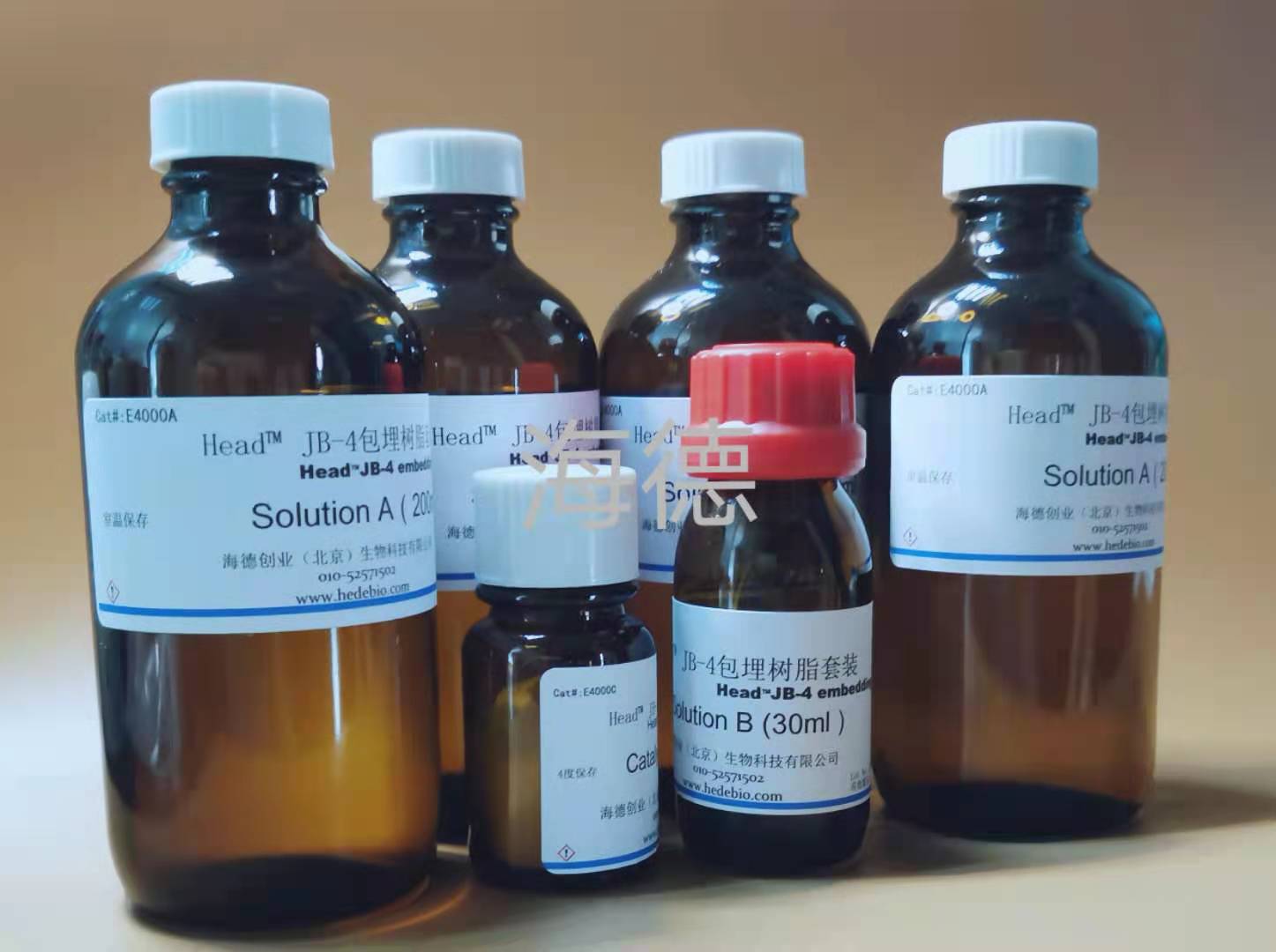 低溫包埋樹脂試劑盒Lowicryl是丙烯酸酯類樹脂,包括K4M、K11M、HM20、HM23等, 其主要特點(diǎn)是在低溫下(K4M:-35℃,K11M : -60°C,HM23: -80°C,HM20:-70℃)仍保持低粘度,并具有在紫外光(波長360nm)照射下聚合的能力,均非常適用于電鏡免疫組織化學(xué)。在這些包埋劑中,K4M和K11M具有親水性(極性樹脂),能較好地保持組織細(xì)胞的微細(xì)結(jié)構(gòu)和抗原性,特別適于免疫細(xì)胞化學(xué)染色,且背景染色低,是超微結(jié)構(gòu)定位組織細(xì)胞抗原的良好包埋劑。HM20和HM23為疏水性(非極性樹脂),圖像反差好,較適于掃描電鏡和透射電鏡的暗視野觀察標(biāo)本制作。