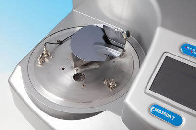EMS300R T 大樣品離子濺射鍍膜儀Large-Chamber-Rotary-Pumped Sputter Coater, fitted with three sputtering heads to ensure even metaldeposition. Include three 57mm Ø x 0.3mm gold (Au) sputter targets. A flat rotation stage for 8”/203 mm/and 6”/152 mm wafers is fitted as standard |