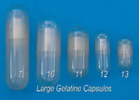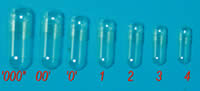 天然的、硬質(zhì)明膠膠囊。小的膠囊常用作水溶性樹脂包埋的包埋模具,或者作為需要光固化樹脂的包埋用品(LR white 樹脂紫外固化)。明膠膠囊在0.5% HCl溶液里36-38°C時大約5分鐘溶解完畢(水中37°C或者人造胃液中大約2分鐘。大明膠膠囊Large Gelatin Capsules通??梢杂脕泶娣乓恍┬〉臉颖荆部梢宰鳛槭灠竦陌衲>呤褂?。