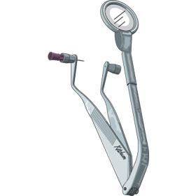 動物識別系統(tǒng)中常常用到耳標,通常的耳標使用受到多重限制:標識的個數、動物的大小、意外脫落等等。這里介紹一套快速有效的可長久標識實驗動物的工具—紋標工具。實驗大鼠和小鼠,不受月齡限制(1天的小鼠即可標識)。不銹鋼鑷樣工具的一端是穿刺針頭,工具的另一端是盛有綠色紋標色膠的小金屬容器。工具的上方帶有一放大鏡,便于實驗工作者準確干凈的灌注綠色紋標色膠。