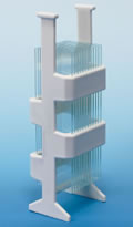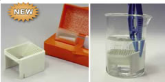 包括Wash-N-Dry蓋玻片架和Wash-N-Dry載玻片架,均可以高壓滅菌,可以透明、處理、染色、干燥一口氣完成。國際實驗室最新流行款式,一般用燒杯來盛放染液或者洗液,再將架子浸入其中。蓋玻片架至多可以放置10片蓋片,最奇妙的是蓋片的大小不受制約,18mm,22mm,25mm,均可以從容放置。載玻片架可以放置12個標準載玻片。