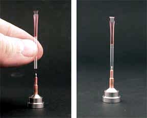 用帶有膠封的移液槍頭注射穩(wěn)態(tài)溶液于塑料管中,接著開(kāi)放端插位于Base上的MicroMount。