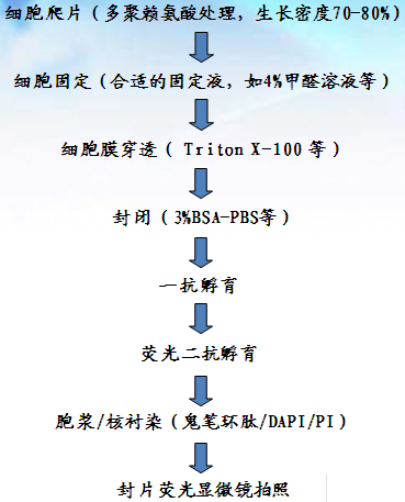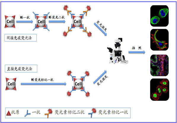 ?? 原理:免疫熒光就是利用抗原與抗體的特異性結(jié)合原理及特殊的熒光素標記技術(shù),通過激光激發(fā)使熒光素發(fā)出熒光,在熒光顯微鏡下觀察熒光的變化從而對細胞內(nèi)的抗原進行分析的技術(shù)。用免疫熒光顯示和檢查細胞或組織內(nèi)抗原或半抗原物質(zhì)等方法稱為免疫熒光細胞(或組織)技術(shù)。